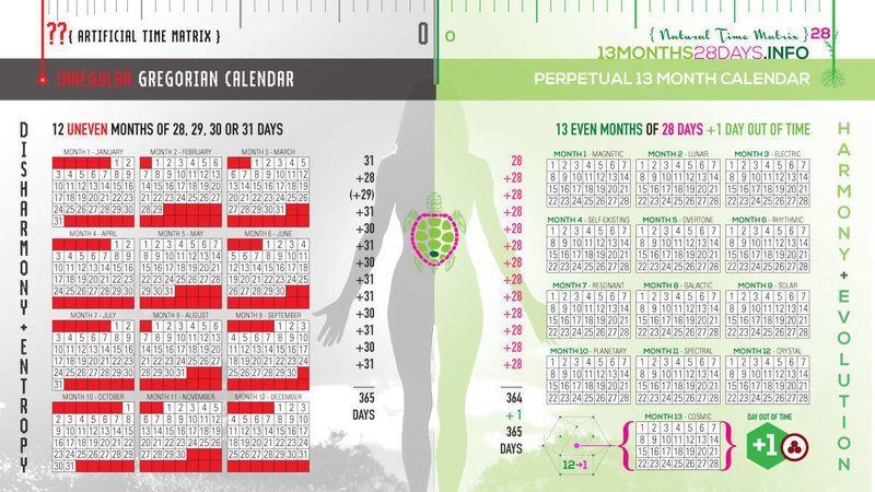 Календарь 13 Лун по 28 дней — это новый стандарт времени для всех людей, кто искренне мечтают о новом мире, где бы они ни находились. Если календарь и время, которым мы следуем, иррациональны, искусственны и механизированы, то таким же становится и наш ум. И как наш ум, таким же становится и наш мир: нерегулярным, искусственным и механизированным. Но, если календарь которому мы следуем, гармоничен и настроен на естественные природные циклы, то таким же станет и наш ум, и тогда мы сможем возвратиться на более духовный жизненный путь в гармонии с природой.